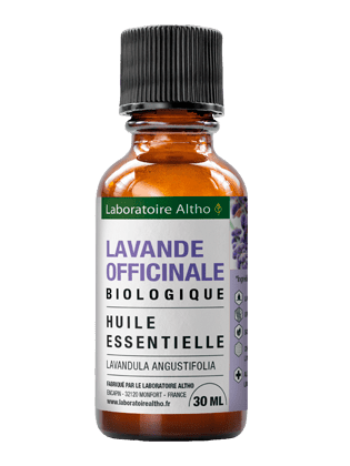 Huile essentielle de lavande officinale bio Altho, obtenue à partir de la distillation des sommités fleuries.
