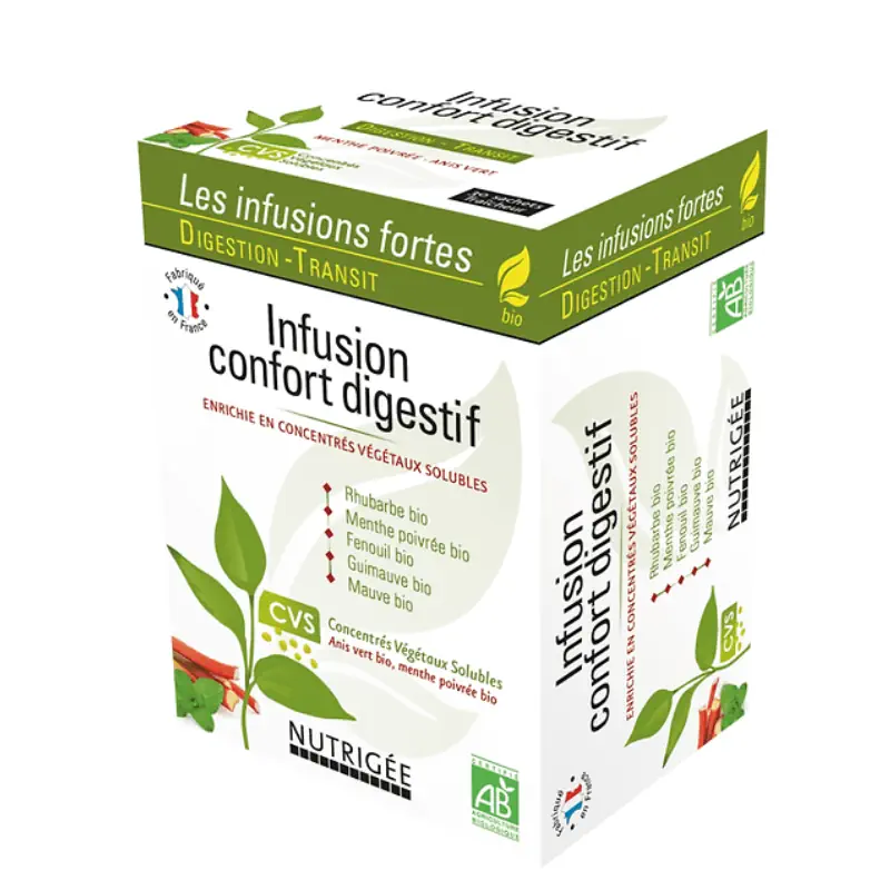 L’Infusion Confort Digestif de Nutrigée est votre alliée naturelle pour maintenir une digestion équilibrée et favoriser un transit régulier. Offrez-vous cette infusion de qualité supérieure et laissez les bienfaits des plantes biologiques prendre soin de votre confort digestif au quotidien.
